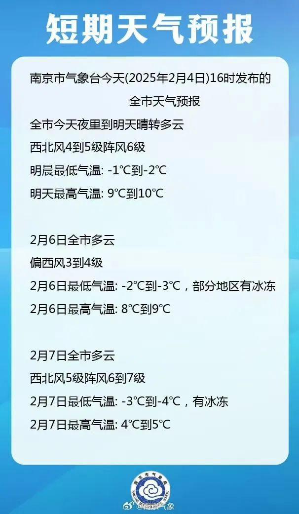 -4℃,有冰冻!南京未来几天……